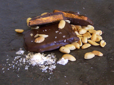 Rich and flaky toffee infused with all-natural peanut butter, enrobed in 70% bittersweet chocolate, topped with toasted Virginia peanuts and Maldon sea-salt... I'm pretty certain it will make a big splash.